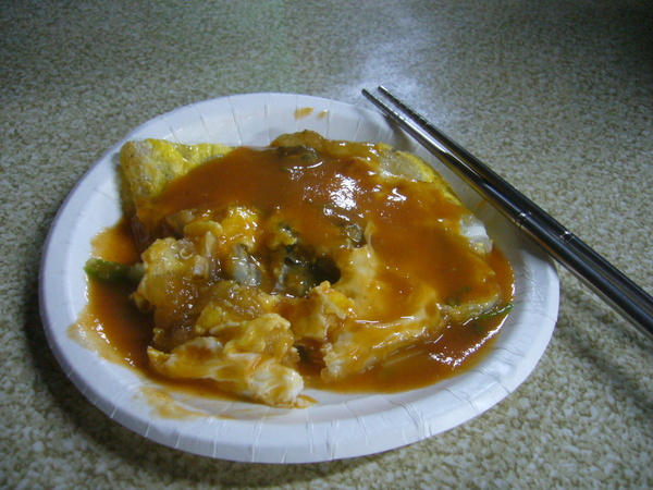 不過後來等了大約15分鐘,一份熱騰騰的蚵仔煎就上桌啦